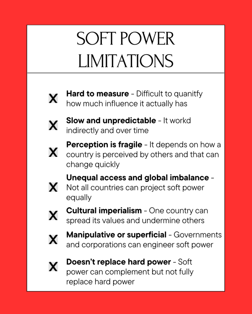 With all the positives of soft power that influences the world’s perception of a country, there are weaknesses to nations’ approaches to using this method of enhancing the country’s image globally.