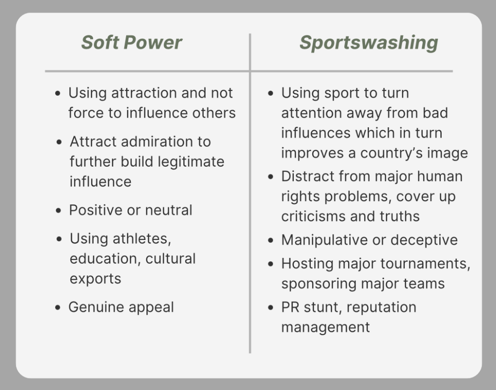 Soft power and sportswashing are two very closely linked ideas that lead to a country or organisation promoting themselves to win over public perception, but they come with their differences.